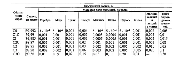 Строгое ограничение содержания примесей обеспечивает стабильность свойств свинца С1 и его высокую технологичность при переработке и эксплуатации.